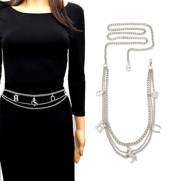 Designed to sit comfortably at the waist or hips, this adjustable chain belt styles beautifully over dresses, skirts, trousers, or tailored silhouettes. The harness-style detailing gives it a unique, fashion-forward feel while remaining effortlessly wearable.