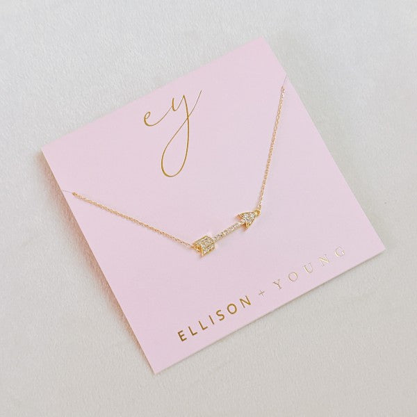 Modern with a romantic edge, this cupid arrow necklace offers a subtle nod to love and connection. Designed with a sleek, minimal silhouette and delicate sparkle accents, it brings just the right amount of charm without feeling overdone.